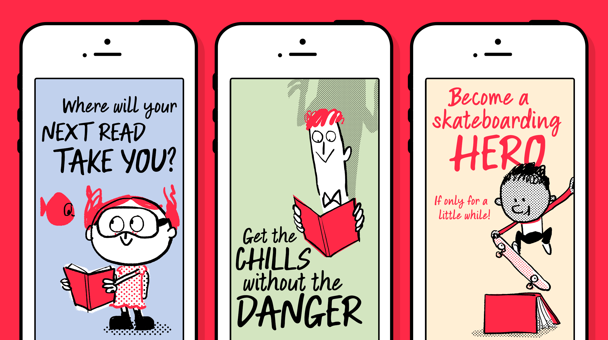 To add personality and help the brand connect with its customers, a unique collection of distinctive hand‐drawn illustrations were introduced — showing joyful characters of all backgrounds, ages and interests enthralled in a world their new book has transported them to.